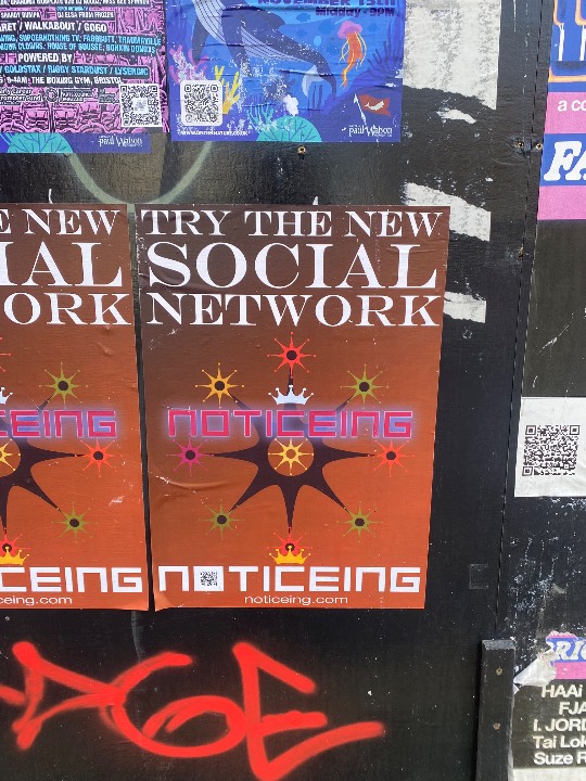 Noticeing uses your geolocation location as a form of ID so you don’t have to sign up to use it. There are no adverts, no data is stored on you and the voting system enables trashy or unpleasant notices to be voted off the network.