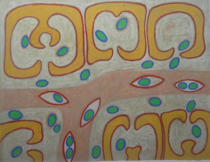 Painting - pastels on board - shows the same structures in parallel universes: