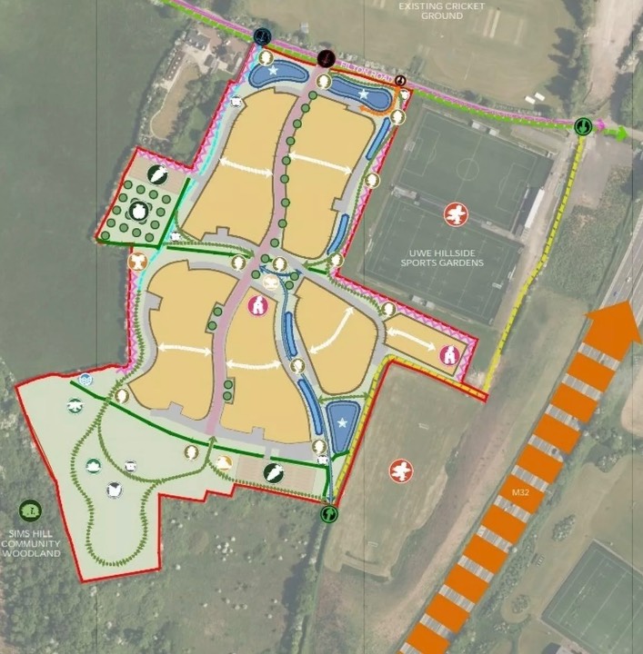 A developer has submitted proposals to build around 200 new homes on green-field land near the M32 in the Frenchay area of Bristol, together with plans for a new public park. The site is intended to provide a mix of housing types and community space, responding to local housing demand and green-space ambition.